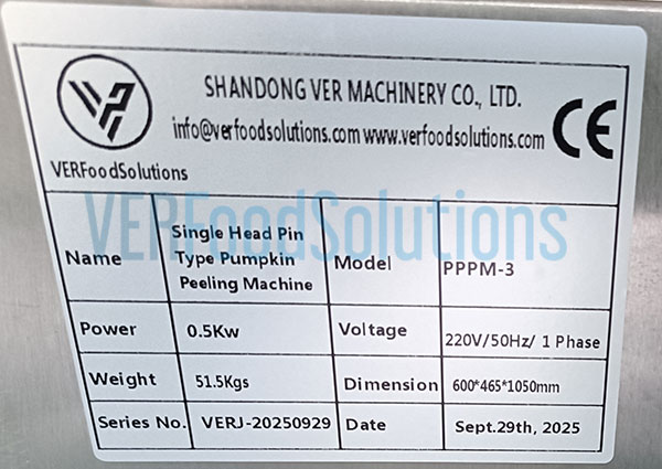 Our pin-type pumpkin peeling machines are CE certified, demonstrating compliance with EU health, safety, and environmental standards. This certification assures you of the machine’s quality and safety for use.