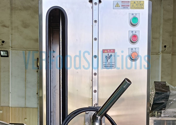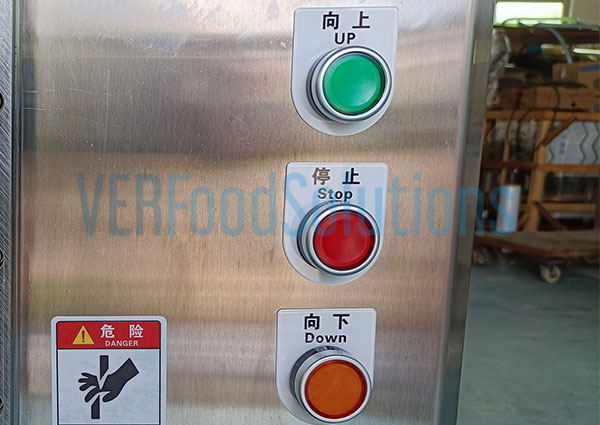The pin-type pumpkin peeling machine is equipped with a straightforward English control panel, featuring easy-to-use up, down, and stop buttons. This design makes operation simple and convenient, allowing users to operate the machine efficiently without complicated instructions.