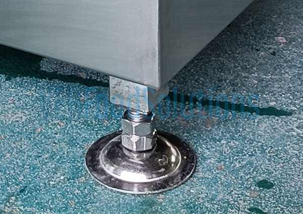The pin-type pumpkin peeling machine is equipped with sturdy, adjustable feet. The four feet can be easily adjusted in height to help maintain a level position on uneven surfaces, ensuring stable and safe operation.