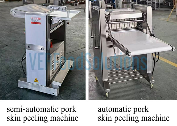 To cater to the diverse needs of our customers, we offer a range of pork skin peeling machines in various models. From the compact semi-automatic tabletop pork skin peeling machine ideal for small-scale operations, to the more robust Semi-automatic Floor Model designed for moderate production volumes, and the fully automatic pork skin peeling machine suited for large-scale processing facilities. Each model is engineered to deliver efficient, reliable performance, allowing businesses of all sizes to optimize their meat processing workflows seamlessly.
