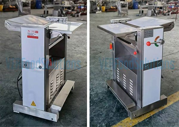 Our automatic pork skinning machine is fitted with a safety guard positioned above the rollers and blades, effectively preventing accidental contact during operation. This safety feature ensures that operators can work with confidence and reduces the risk of injuries, making the machine safer to use in busy processing environments.