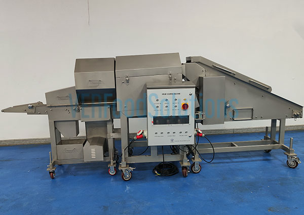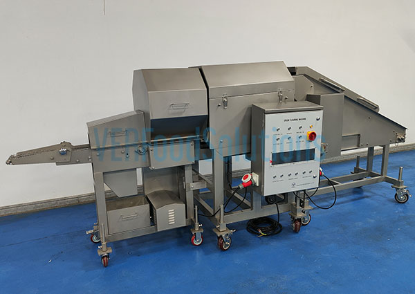 Our drum flouring machines come in a range of sizes, with conveyor belt widths of 300mm, 400mm, and 600mm, offering multiple models to suit various production needs. Whether you’re processing small batches or large-scale operations, you can select the model that best fits your production volume. In our recent case, the customer chose a 300mm drum flouring machine to complement their existing equipment, ensuring a seamless upgrade to their production line.