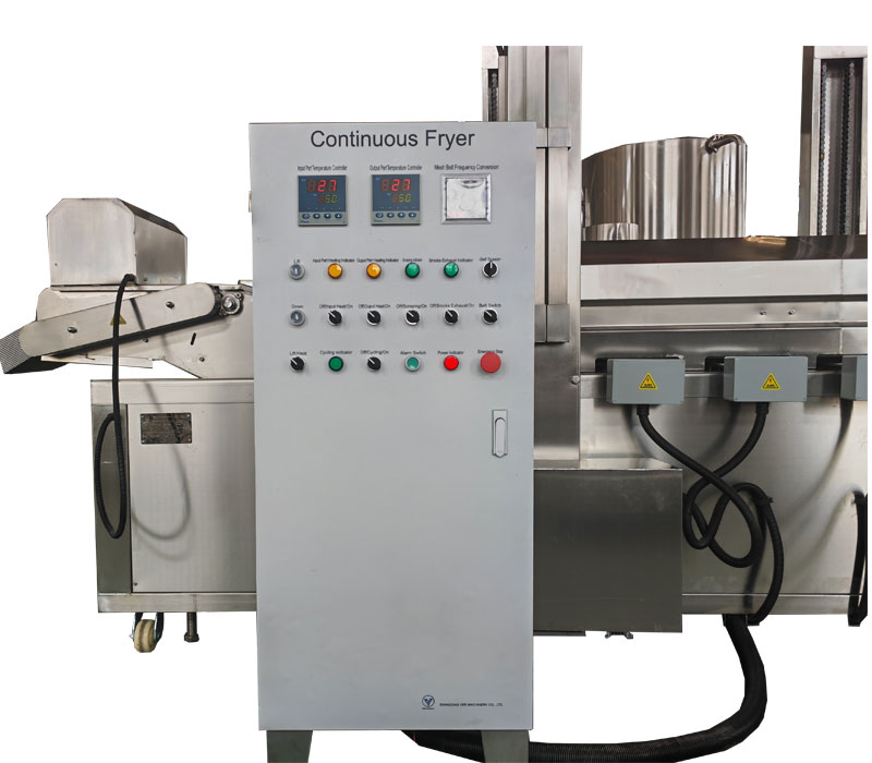 – When the temperature reaches about 150 degree, the frying material can be added via a conveyor belt ( coating equipment is usually connected to the continuous fryer).
