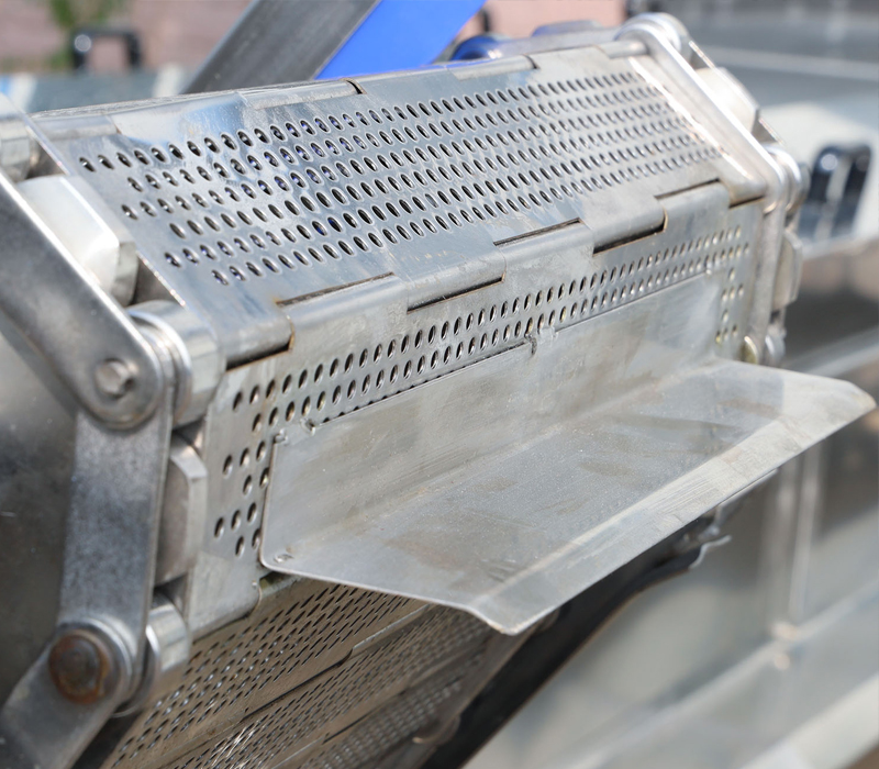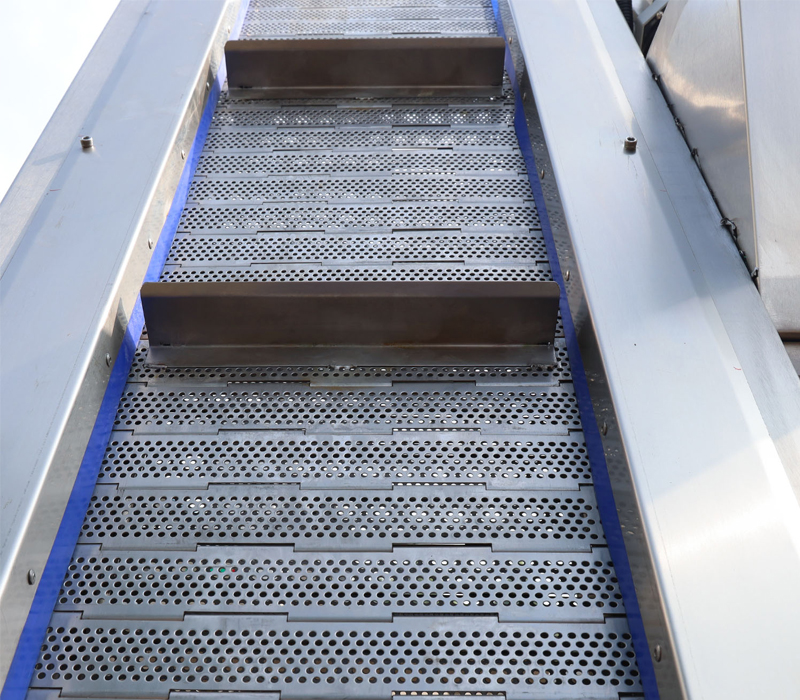 In today’s busy, complex, and efficiency-driven food processing production lines, large-scale food processing equipment has quietly been added, requiring a helpful assistant – the belt elevator. Belt elevators feature an inclined climbing design, and the mesh belt is usually equipped with baffles or lifting buckets to prevent material slippage. They are suitable for lifting products to higher positions for further processing. The entire machine is made of 304 stainless steel, which is corrosion-resistant, wear-resistant, and meets food hygiene standards, making it a valuable tool in food processing.