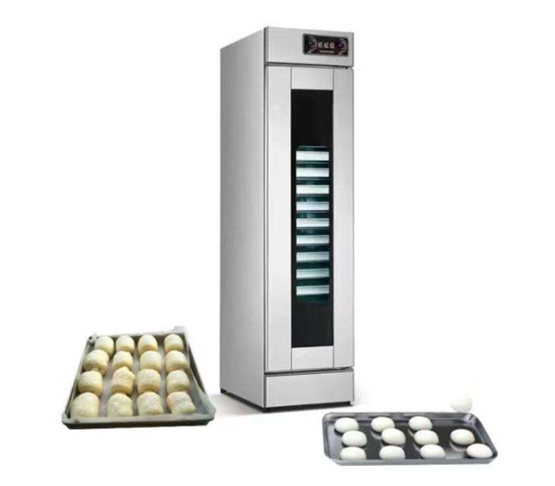 What are the main functions of a bread proofer machine?By precisely controlling temperature (35-40℃) and humidity (75-95%), it provides the optimal fermentation environment for dough, promoting yeast activity, reducing swelling, and improving the texture and appearance of bread, steamed buns, and other pasta products. What is the difference between a bread proofer machine and conventional fermentation?Conventional fermentation relies on room temperature or simple tools (such as an oven or a warm water basin), resulting in large fluctuations in temperature and humidity, which can easily lead to under- or over-fermentation. A proofer machine, through intelligent adjustment, ensures stable and efficient fermentation, producing a more uniform and professional finished product. How do I set the appropriate temperature and humidity?You can adjust the temperature and humidity settings required for your product through the control panel. Eg: – Bread/Steamed Buns: Temperature 38℃, Humidity 80%-85% (to prevent surface crust formation). Does the bread proofer machine need to be preheated?Yes. It is recommended to preheat the empty chamber for 10-15 minutes after turning on the machine, and then put the dough in after the temperature and humidity have stabilized. Does the water tank of the bread proofer machine need to be replenished daily?It is recommended to empty the water tank after each use to avoid limescale buildup; when used frequently for commercial purposes, you can change and add purified water daily to reduce limescale buildup. |
