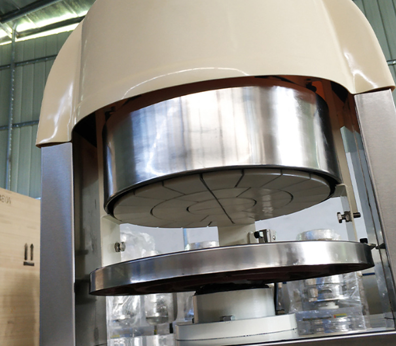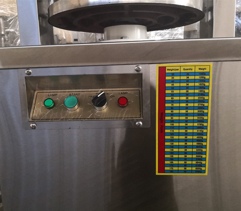 The machine has a touch protection sensor that only allows operation when the dividing tray is properly positioned in contact with the switch. This prevents accidental startup, protecting both the machine from damage and operators from safety hazards.