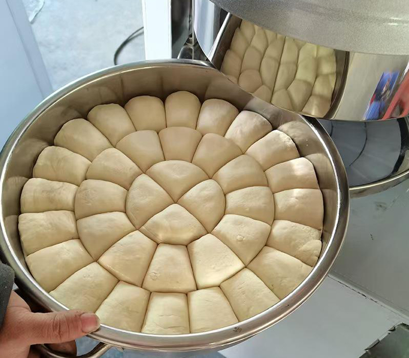This machine can evenly divide 36 pieces of dough at once. The weight of each piece is adjustable between 30-160 grams, meeting various product requirements and minimizing waste.