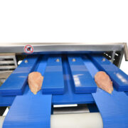 The horizontal chicken breast slicing machine slices 120+ breasts/fillets per minute, ensuring perfect shape with CE-approved safety features.