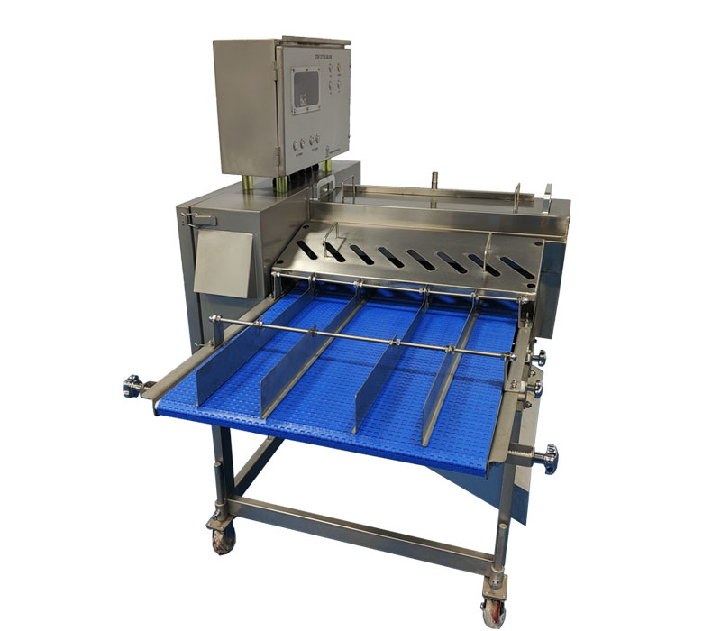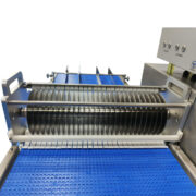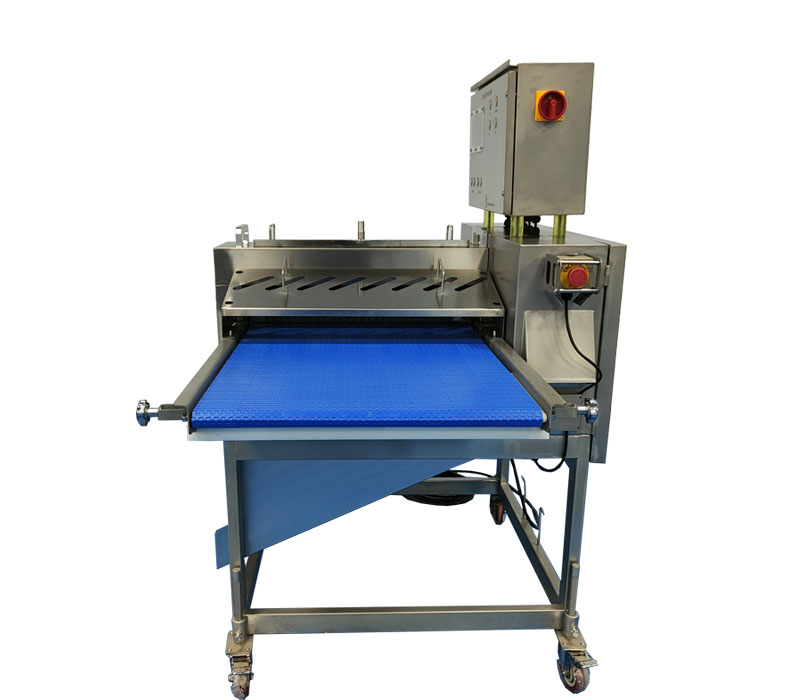 This strip and dicer has two lane operationwhich can dice up to 150 pieces per minute.