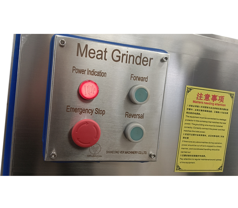 Whole machine body made of stainless steel, VER Industrial Meat Grinder compliant with hygienic standards, and machine surface smooth and easy to clean. With large feeding inlet and smooth raw material adding, high-efficiency production, reasonable design, and low friction during the meat grinding process, which is conducive to the preservation of meat quality.