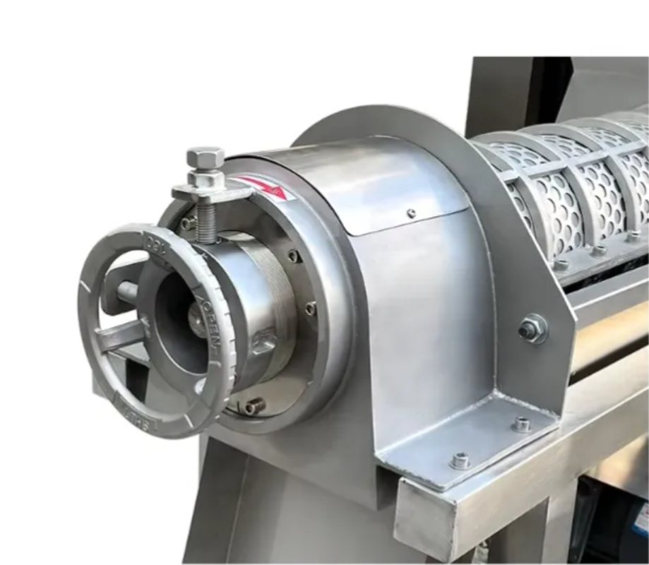 Check the gap adjustment of the pressure regulating head. If it is too small, residue may be squeezed with the juice, reducing quality. Slightly increase the gap to prevent over-squeezing. Ensure the spiral is functioning properly and not clogged. Adjust the gap according to process requirements to balance yield and quality.