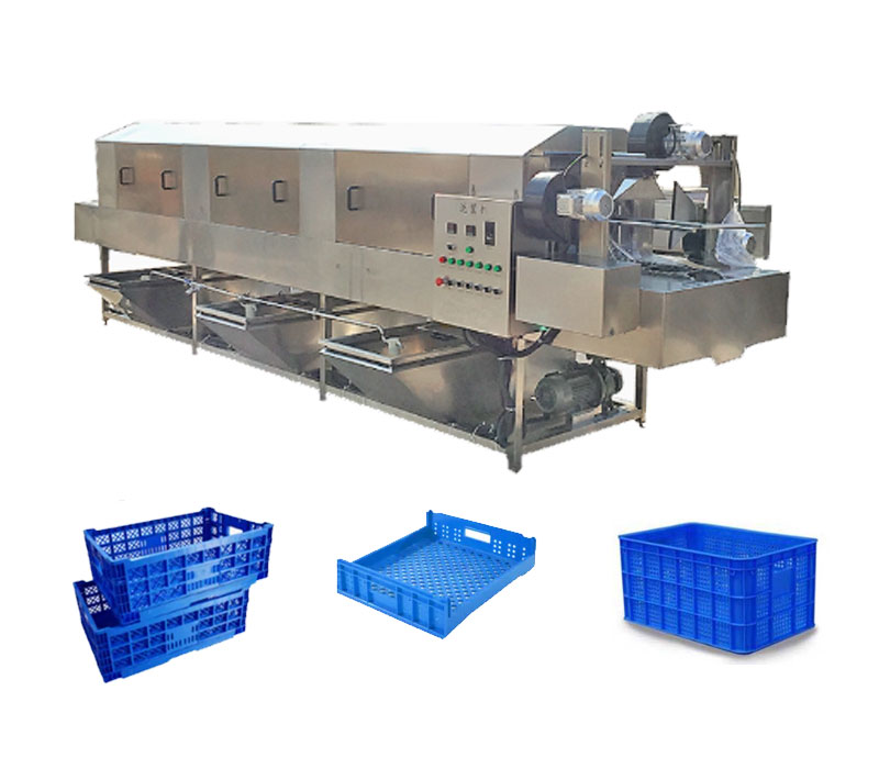 Our crate washing machine can be customized not only to your cleaning process but also to the size of your baskets. It is suitable for all kinds and sizes of food turnover baskets, baskets, milk crates, egg trays, plastic pallets. Just inform us your crate or tray dimension, we can customize suitable crates washing machine for you accordingly.