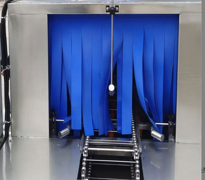 Our crates washers typically have four built-in processes: hot alkaline water, hot water, cold water, and air drying.  First, the baskets are cleaned in a high-pressure, hot water bath. Each circulating water tank uses a horizontal stainless steel centrifugal pump for circulating spraying, with the baskets sprayed and rinsed simultaneously from top, bottom, left, and right. Each tank is equipped with a double-pass filter for convenient cleaning of contaminated items. Each tank has a separate wastewater cleaning valve and a shutoff pipe for subsequent discharge. Steam or electric heating elements are installed in the alkaline water tank and the hot water tank, respectively. Our crate washer features a drying area at the end of the process, equipped with a high-powered fan. The fan is mounted on several pipes to ensure thorough drying of the washed baskets. And if you require a different cleaning process, we can also customize your basket washer.
